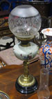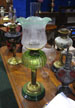 Green Victorian oil lamp and shade