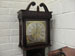 Good quality Victorian oak three-bottle tantalus, with labels to bottles