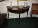 Exceptional Irish Georgian mahogany and satinwood inlaid half-moon side or serving table on turned leg, 46" wide x 22" deep