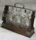 Victorian 3-bottle oak tantalus, with silver mounts, date circa 1900
