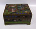 Superb quality satinwood and painted lift-top Ladies' works or writing table, with and tapered leg and cross-stretcher, having brass gallery