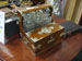 Four drawer military two-part travelling chest with brass handles