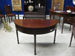 Regency D-ended half-moon mahogany and satinwood inlaid side table, on turned leg