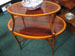 19th century mahogany two-tier etagé/serving table with satinwood marquetry decoration, circa 1890