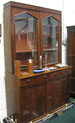 Irish Georgian mahogany two-door library bookcase, with arched glazed doors over drawers and cupboards, date circa 1850, 56" wide x 90" high