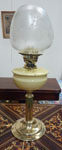 Brass with marble base oil lamp, and frosted glass shade