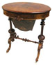 Exceptional 19th century walnut and marquetry inlaid oval works or side table, with X-stretcher, profusely inlaid, date circa 1870