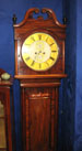 Victorian mahogany longcase Grandfather clock with circular dial and swan neck pediment, having turned column to sides, circa 1870