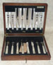 Rare and very fine set of boxed cutlery with pearl handles and solid silver
