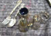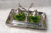 Mixed lot to include silver plated condiment set, a napkin ring and a spoon and fork