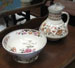 Matching Edwardian mahogany and painted decorated two drawer dressing table with mirrored back