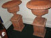 Pair of terracotta garden urns, with lion's head decoration