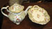 Floral Dresden style china teapot and matching cake stand