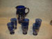 Unusual suite of blue glass and silver overlay jug and six glasses