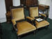 Pair of Edwardian mahogany library chairs, on turned legs