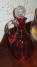 Victorian cranberry decanter and stopper (not matching), 6" high