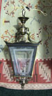 Etched glass and brass hanging lantern, 19" high approx.
