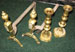 Pair of brass candlesticks and pair of brass fire dogs