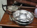 Silver-plated teapot and a silver-plated two-handled dish