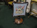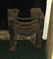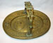 Heavy cast swing handled basket with two medallions inset