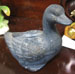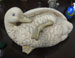 Pottery quirky mallard "duck" preening horizontal overt detail of feather, 11cm x 22.5cm