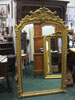 Fine quality French antique pier or overmantle mirror, 69" high x 43" wide, surmounted by sea scroll floral and fluted decoration
