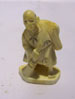 Beautifully carved okimono of figure with brush, 2" high, signed beneath, with slight damage