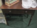 Single drawer 19th century mahogany side table on turned leg, approx. 18" x 30"