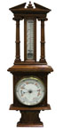 Early 20th century oak aneroid barometer, with arched pediment, column support