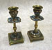 Pair of green marble and cloissonné candlesticks, 6ins tall