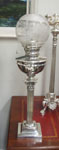 Good 19th century silver plated column oil lamp with corinthian column stand