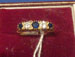 Victorian five-stone sapphire and diamond ring, on 18ct yellow gold band
