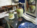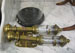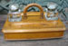 Mixed lot of mother-of-pearl mahogany urn and a Copenhagen miniature vase