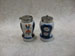 A pair of Imari style English pepper and salts with plated lids 80mm high