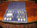 Cased set of twelve solid rat-tail silver spoons and sugar tongs