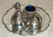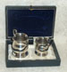 Four piece solid silver condiment set, with tray